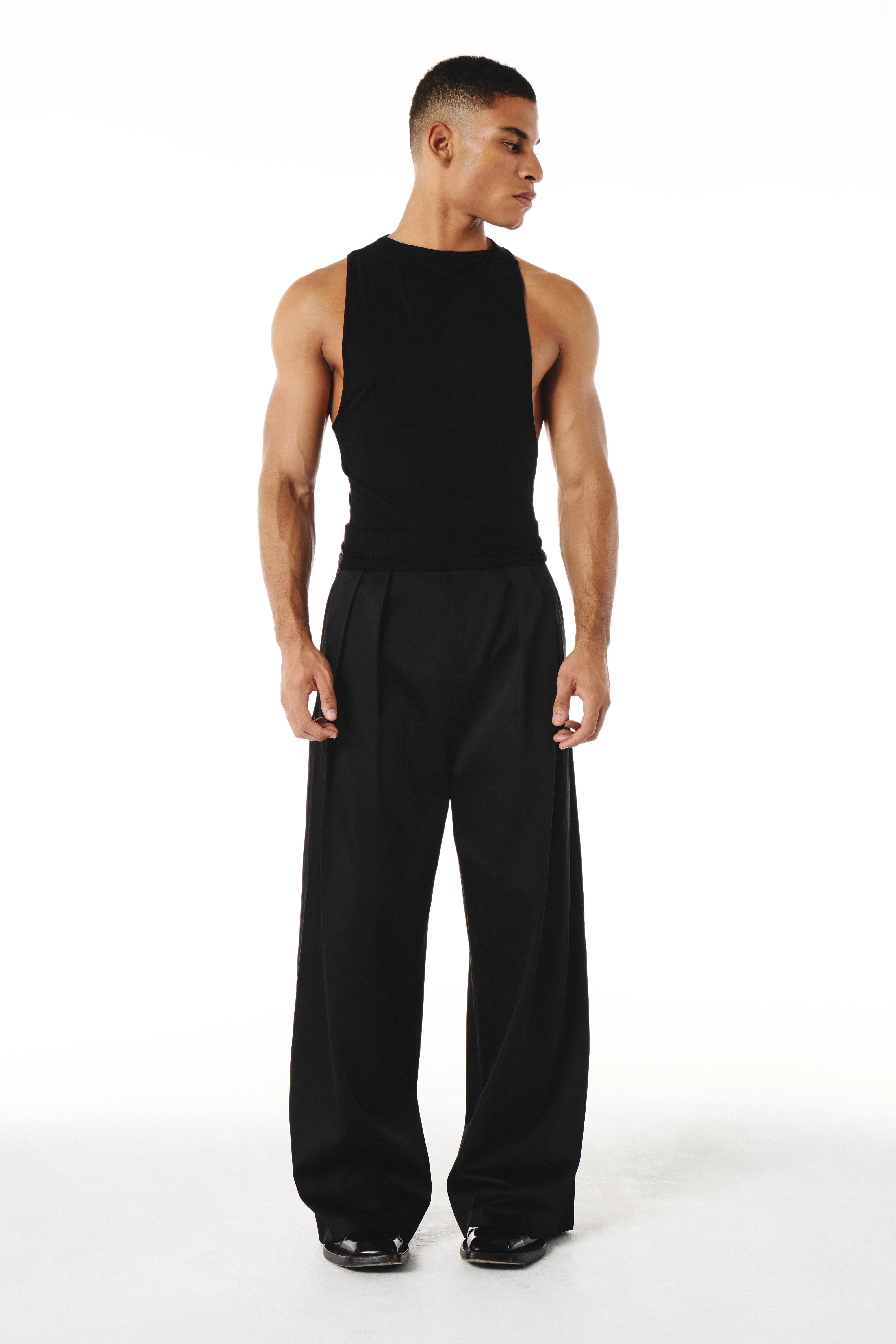 The Jacob top is crafted using a soft touch jersey. It features a low racer back cut. The top is designed to be an essential for layering and evening nights.