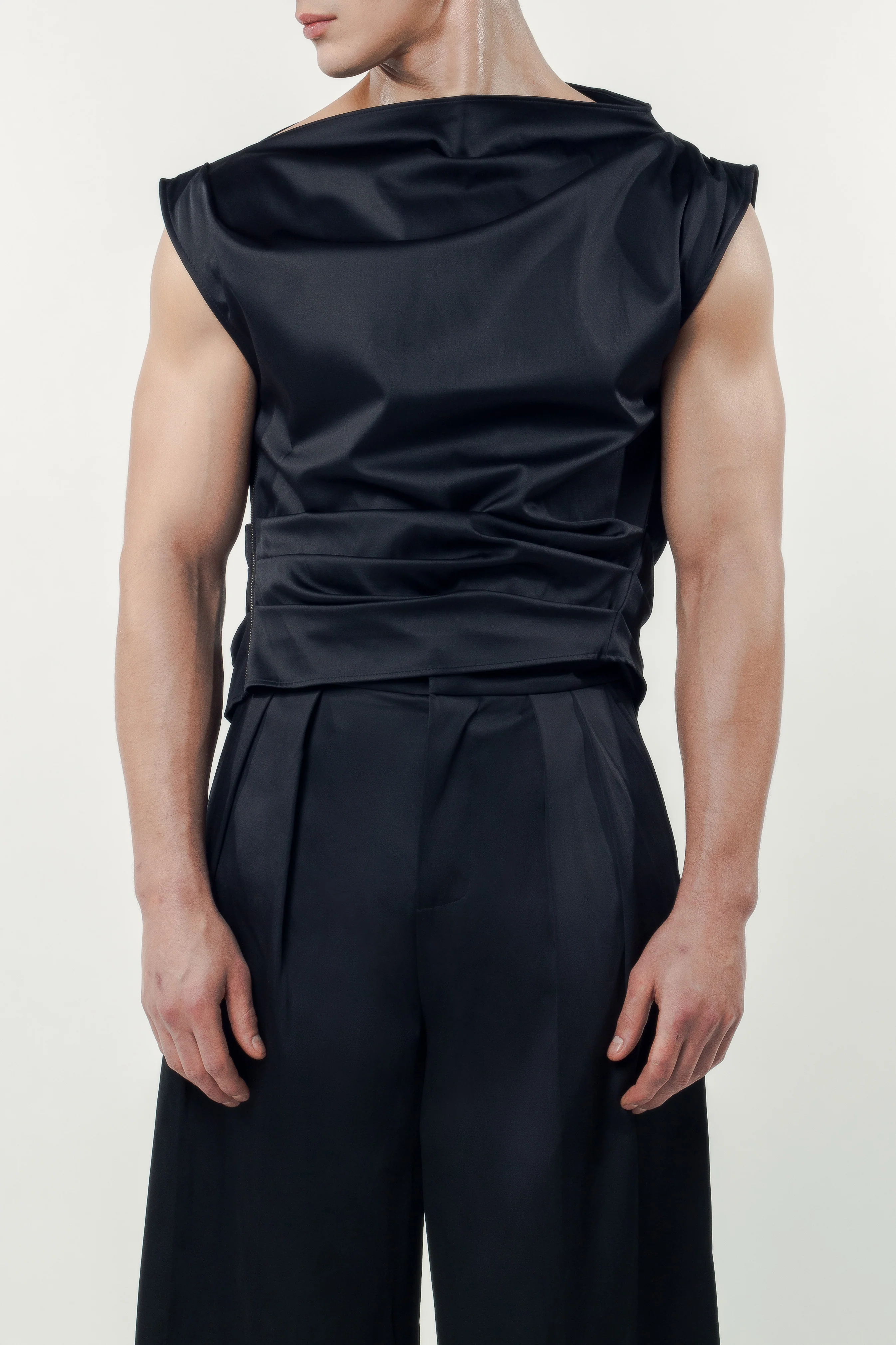 - Asymmetrical neckline and shoulder